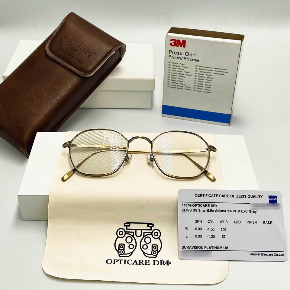 คนไข้ท่านนี้เดินทางมาหาเราที่ OPTICARE DR+ หลังจากผ่านความผิดหวังจากร้านแว่นตาหลายแห่งที่ไม่สามารถตัดแว่นให้ได้ เนื่องจากค่าสายตาและความผิดปกติของกล้ามเนื้อตานั้น "ซับซ้อนเกินกว่ามาตรฐานทั่วไป" แต่วันนี้เราไม่ได้จะมาเล่าแค่เรื่องความยาก แต่เราจะพาคุณไปชม "งานศิลปะแห่งการรักษา" และ"วิทยาศาสตร์ทางทัศนมาตร" ผ่านการรีวิวแว่นตาคู่นี้ ที่เป็นการผสมผสานระหว่าง กรอบแว่น Handmade จากญี่ปุ่น, เลนส์ระดับโลกจากเยอรมนี และ นวัตกรรม Fresnel Prism ที่ได้รับการประกอบอย่างประณีต จนแม้แต่จักษุแพทย์ผู้เชี่ยวชาญยังต้องชื่นชม