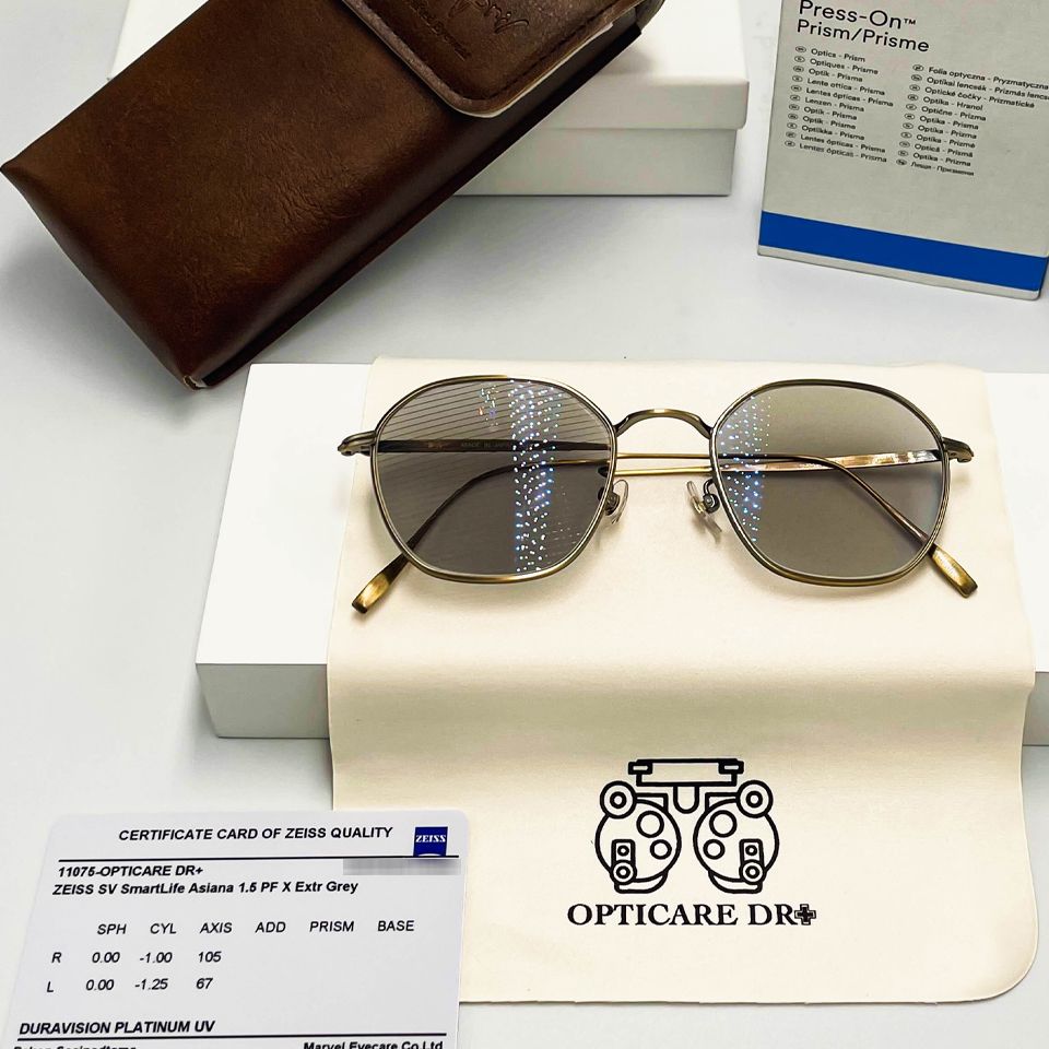 เราเลือกใช้เลนส์ ZEISS Single Vision ดัชนี 1.5 โดยระบุสเปคพิเศษเป็น Asiana Design และ PhotoFusion X ExtraGrey